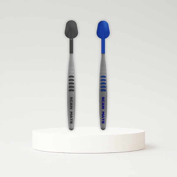 The blue version was developed to work with the Medit intraoral scanner. Medit's blue color technology makes the "blue" Scan Mate invisible to the screen. Invisible retraction!