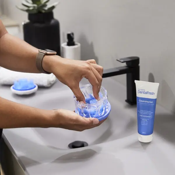 Want a fast and effective brush to clean your dentures, nightguard, aligners, mouthguard? Look no further than the Dr Mark’s SureGrip Appliance Brush. The ergonomic and durable design makes it easy and safe to use whilst thoroughly cleaning your dentures, nightguard, aligners or any dental appliance.