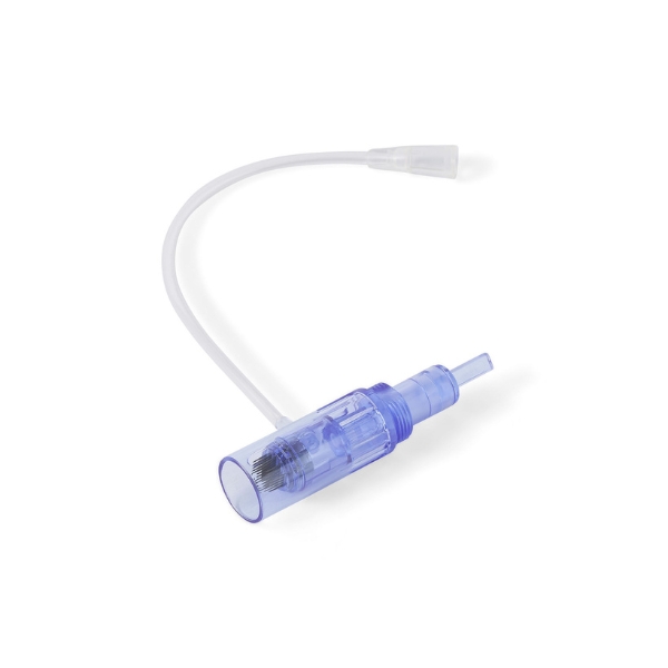 Sterile microneedling cartridges are designed to be used with compatible microneedling pens equipped with an integrated delivery system. The cartridge configuration allows practitioners to create uniform microchannels in the skin, supporting the enhanced absorption and distribution of regenerative solutions during treatment.